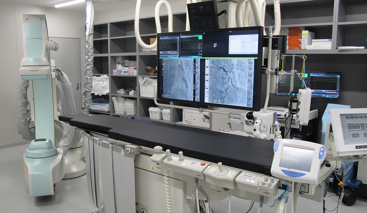 京町内科病院では、最新の血管造影システムを導入しております。 血管造影とは手首の動脈や大腿の動脈からカテーテルと呼ばれる細い管を通し、造影剤という薬を血管に流しながらX線撮影を行い、血管の狭くなっているところ(狭窄)や詰… 患者様に優しいカテーテル検査・治療に取り組んでいます。