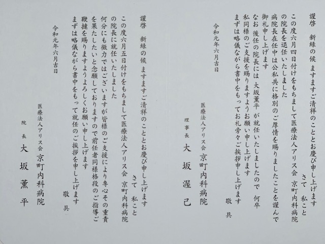 6月5日、38回目の開院日に院長交代をいたしました。これまでもそしてこれからも皆様に必要とされる”小さくてもきらっと光る病院”であり続けたいと思っております。