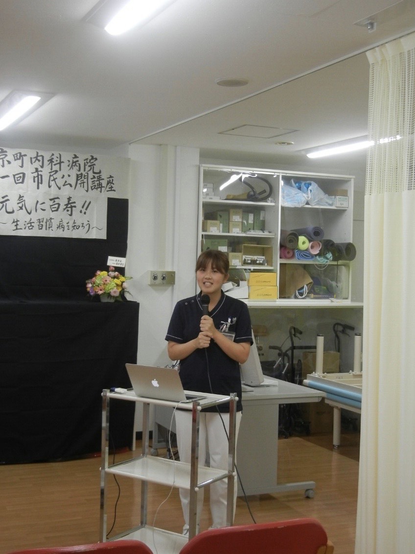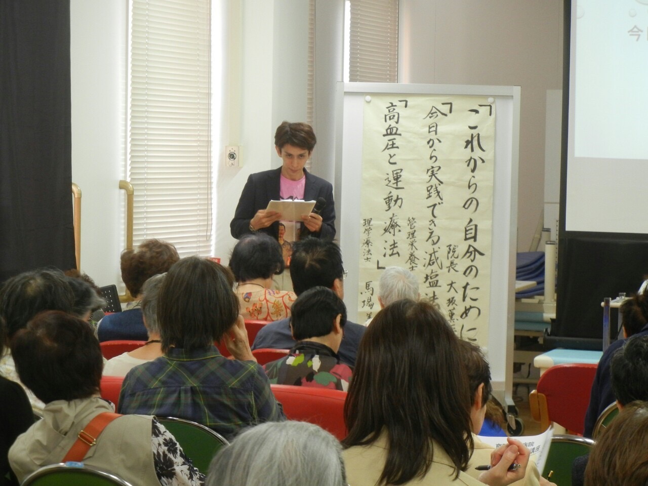 ソーシャルワーカーの野口です。去る10月12日に第1回市民公開講座を当院で開催いたしました。当日は100名以上の方にご参加頂き、”元気に百寿!生活習慣病を知ろう”をテーマに、大坂薫平院長、髙下管理栄養士、馬場理学療法士がお話をさせていただきました。参加者からは「院長先生のお話面白かった」「大変参考になり、実践していこうと思います」など多数のご意見をいただきました。今回初めての取り組みで、行き届かなかった点も多々あったかと思います。反省を踏まえて今後も継続し、少しでも皆様のお役に立てるような行事にしていきたいと思っております。当日は大型台風が接近して関東では多くの方がお亡くなりになりました。あらためてご冥福をお祈り申し上げます。