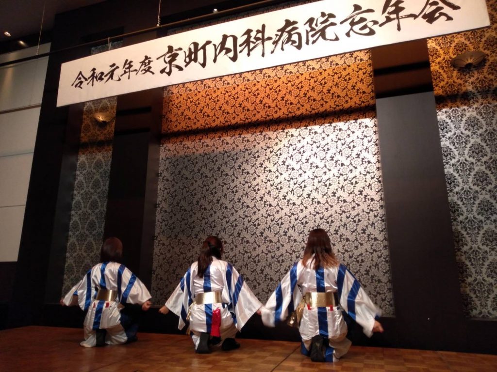 本年も毎年恒例の「京町内科病院忘年会」が九十九島ベイサイドホテル&リゾートフラッグスにて開催されました。職員が楽しみにしている年末のイベントです。美人職員三人娘のYOSAKOIの演舞、全員参加のじゃんけん大会、なかなか正解できず大笑いしたジェスチャーゲーム、そして院長&放射線技師長によるコント!!!など大盛況でした。美味しいお料理、お酒も頂きながら来年の英気を養えた楽しい時間を過ごせました。新年も患者様のお役にたてるよう頑張りたいと思います。今年も一年ありがとうございました。皆様、良いお年をお迎え下さい。
