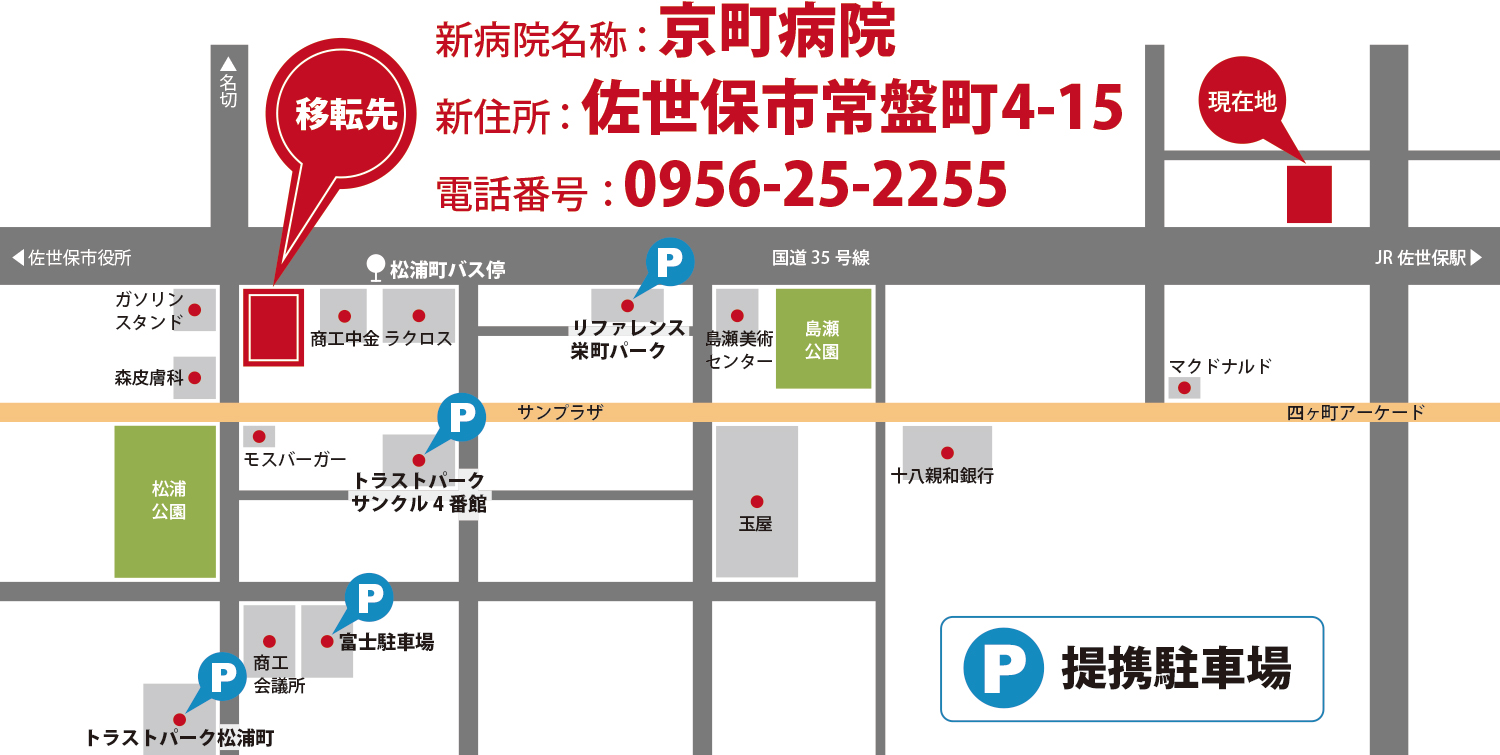 *新病院は駐車場がございません。申し訳ございませんが、提携駐車場にお停め頂いた場合のみ 1時間無料券を発行いたします。